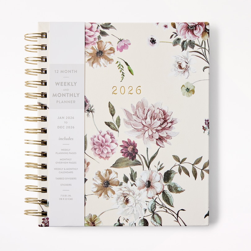 2026 12-Month Spiral Agenda, Ivory Floral
