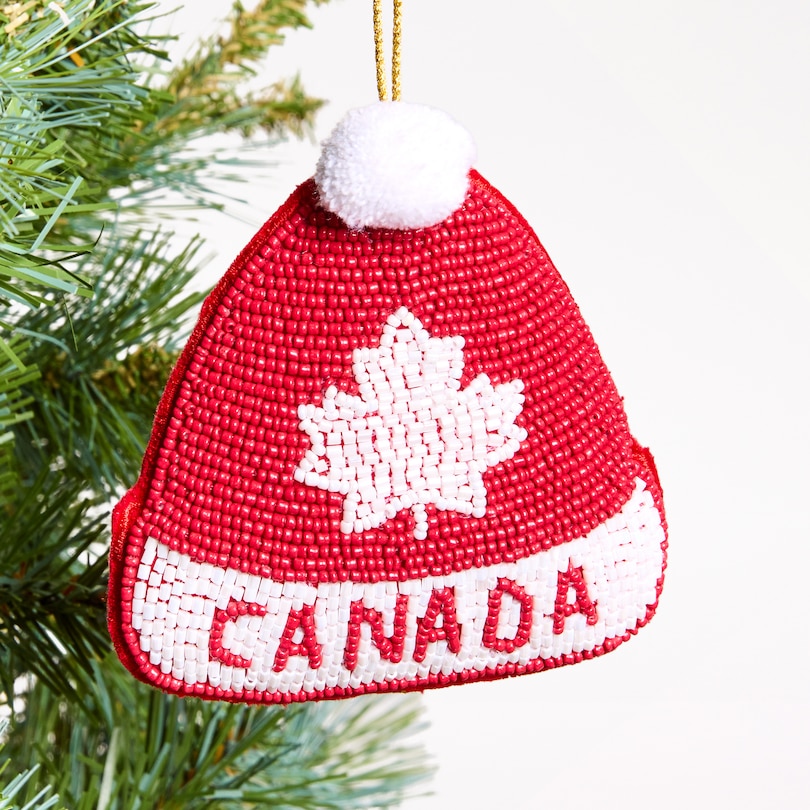 Beaded Toque Maple Leaf Ornament