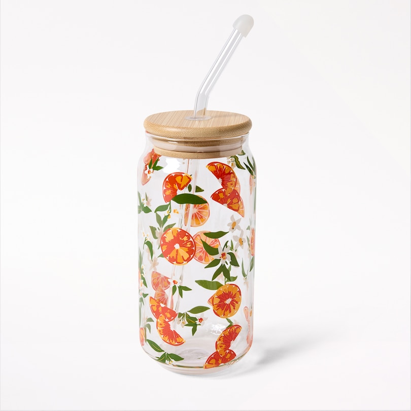 Borosilicate Glass Tumbler with Straw, Citrus Slice