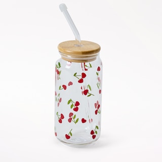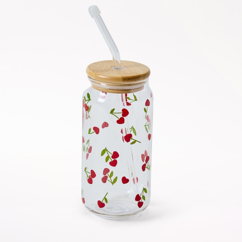 Cherry Heart Glass Tumbler with Straw