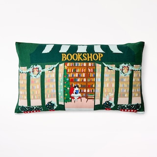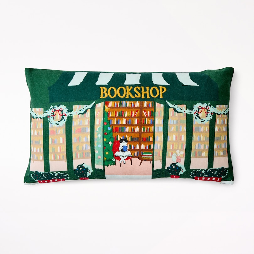 Embroidered Pillow Cover Holiday Bookshop, 12x12