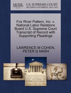 • Front cover_Fox River Pattern, Inc. V. National Labor Relations Board U.s. Supreme Court Transcript Of Record With Supporting Pleadings
