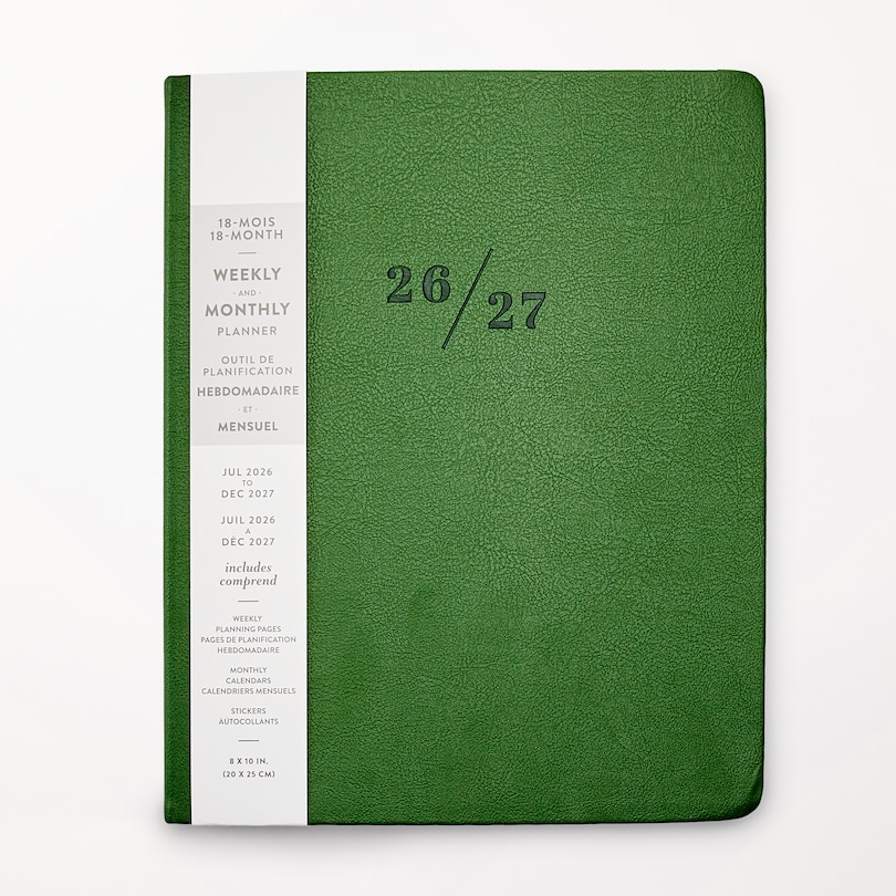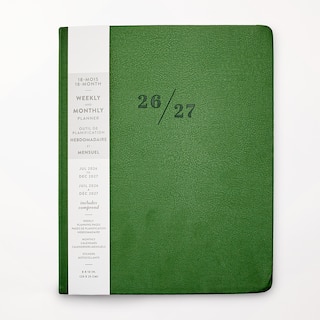 Large Green Faux Leather Planner, 17 Month