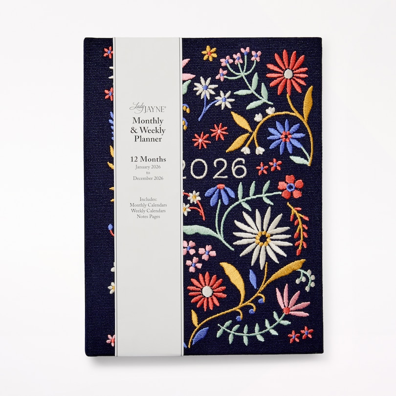 Navy Floral Embroidered Planner