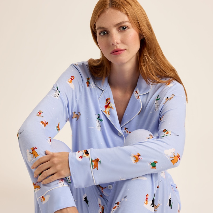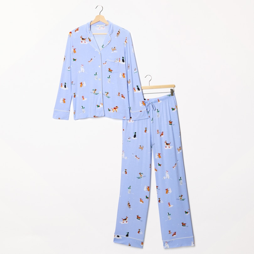 Piped Pajama Pant Set, Holiday Dogs