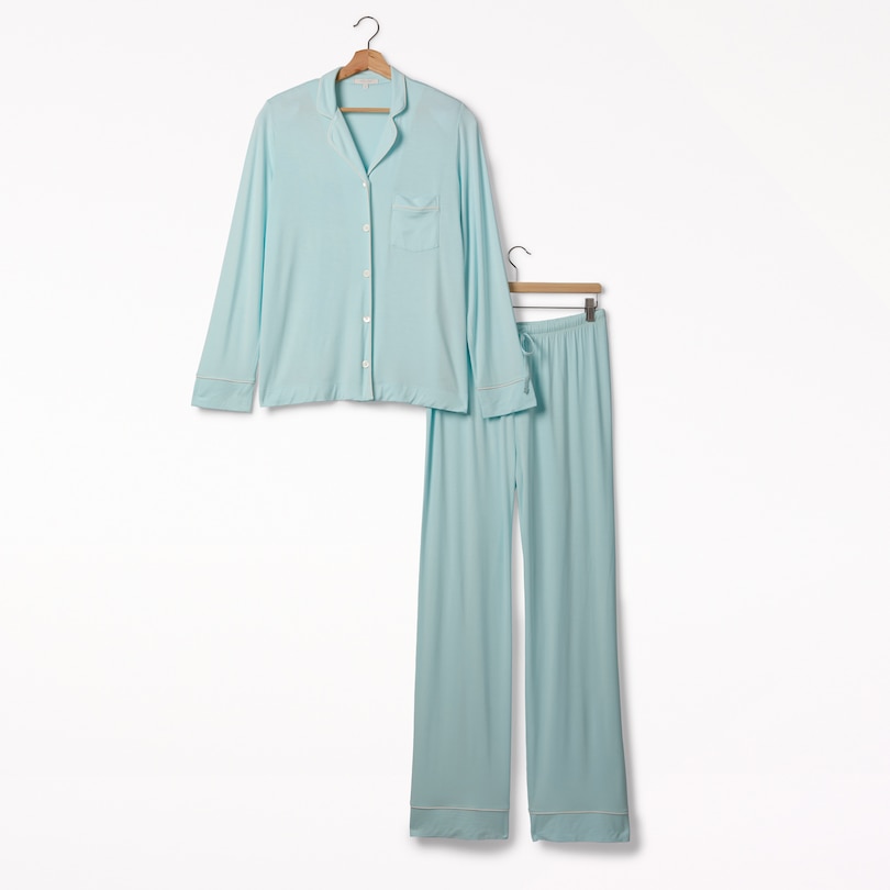 Piped Pajama Pant Set, Mist