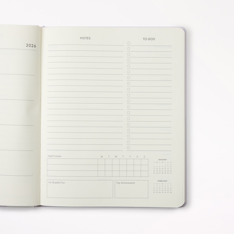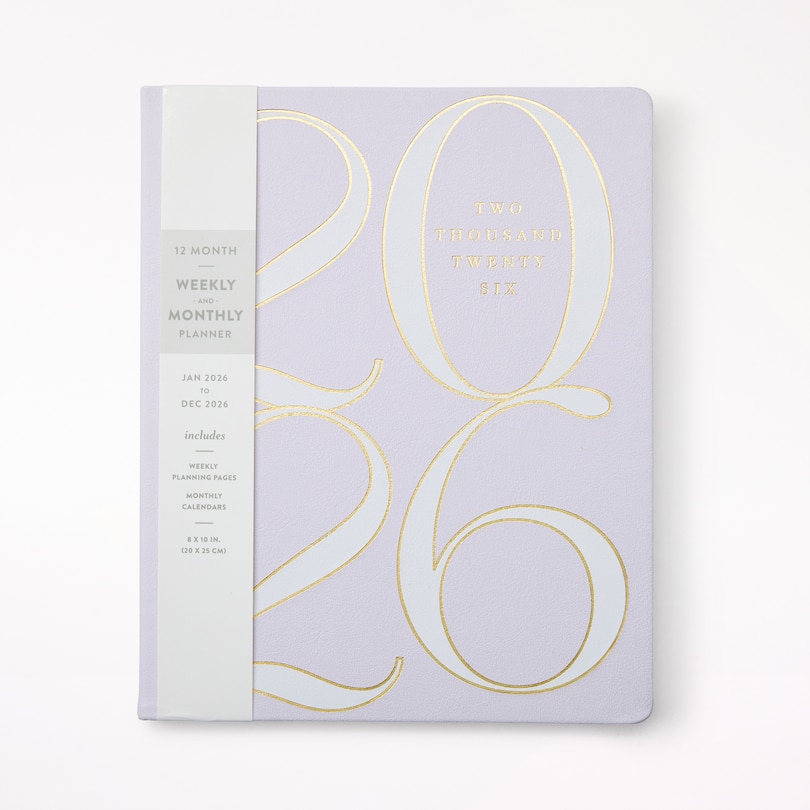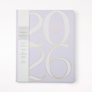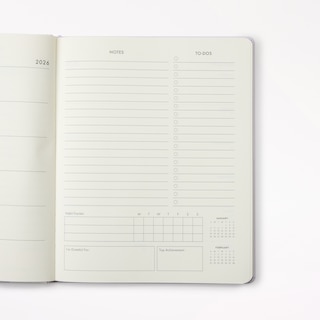 Agenda 12 mois 2026, numéros violets en blocs