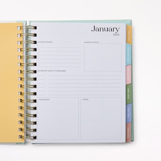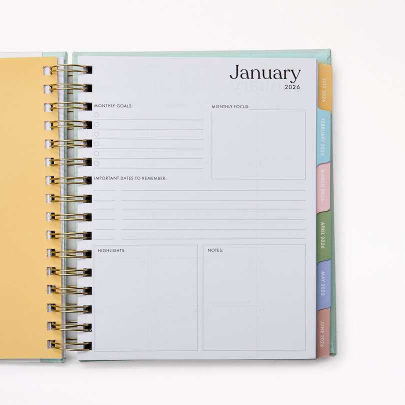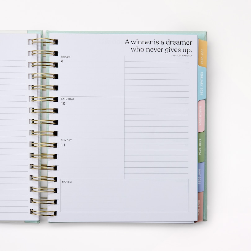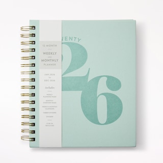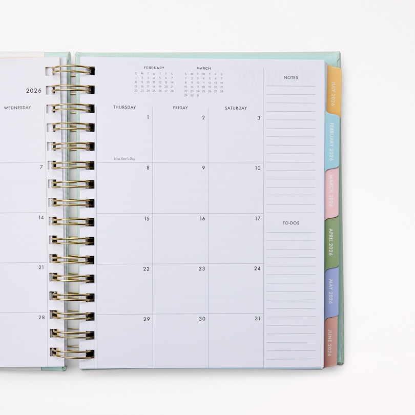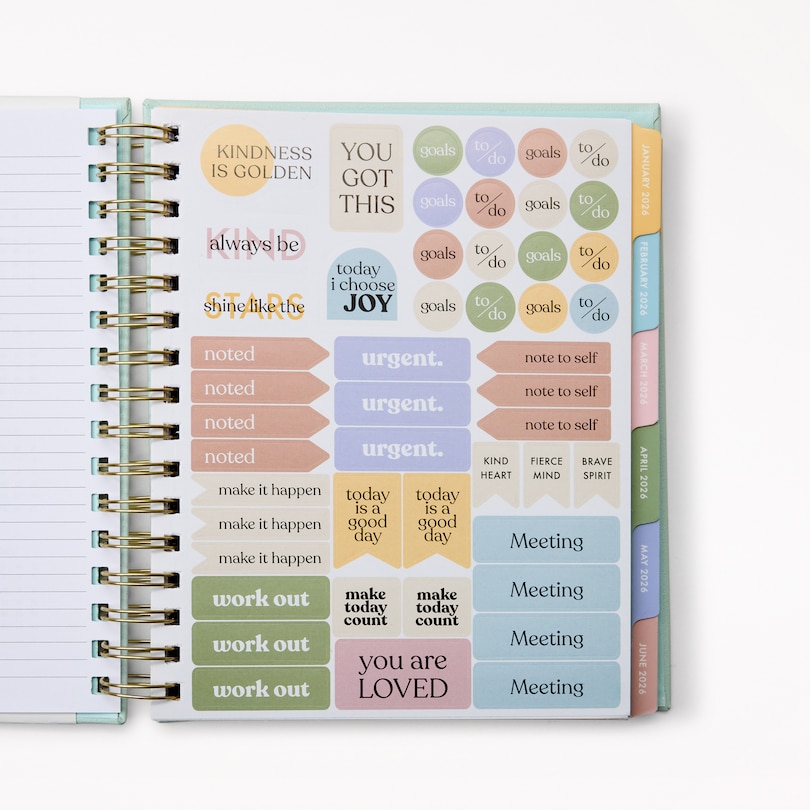 Agenda spiralé 12 mois 2026, Numéro en blocs menthe