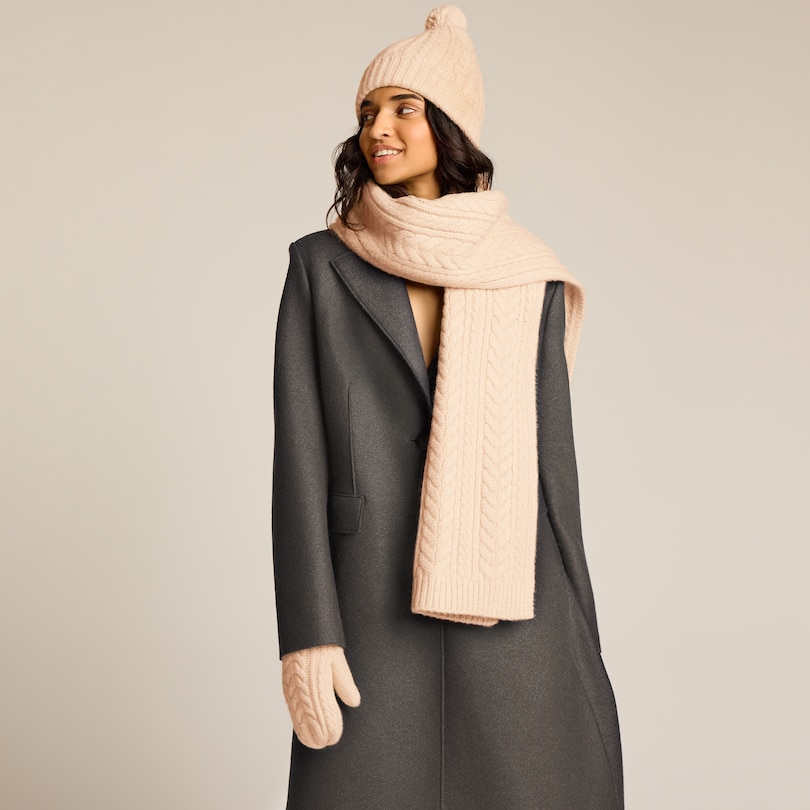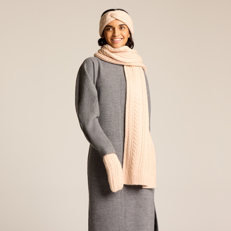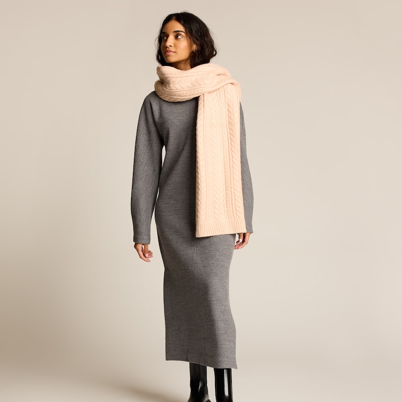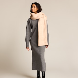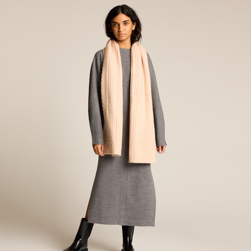 Écharpe à maille torsadée – Rose poudré