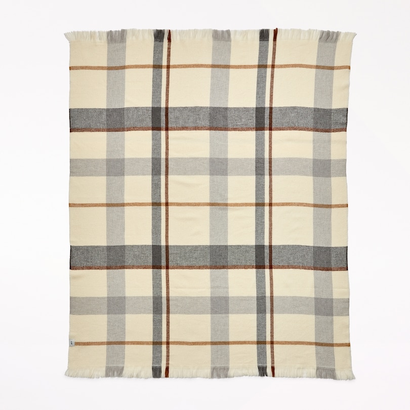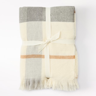 Jeté Ultra-Doux, Motif à Carreaux Ivoire