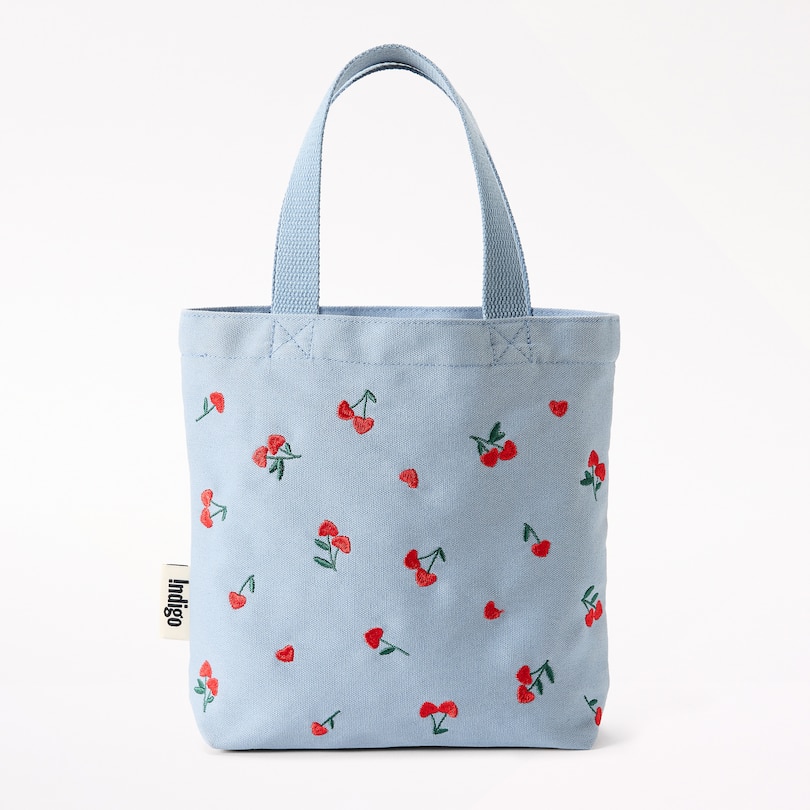 Mini tote, brodé de cœurs cerises