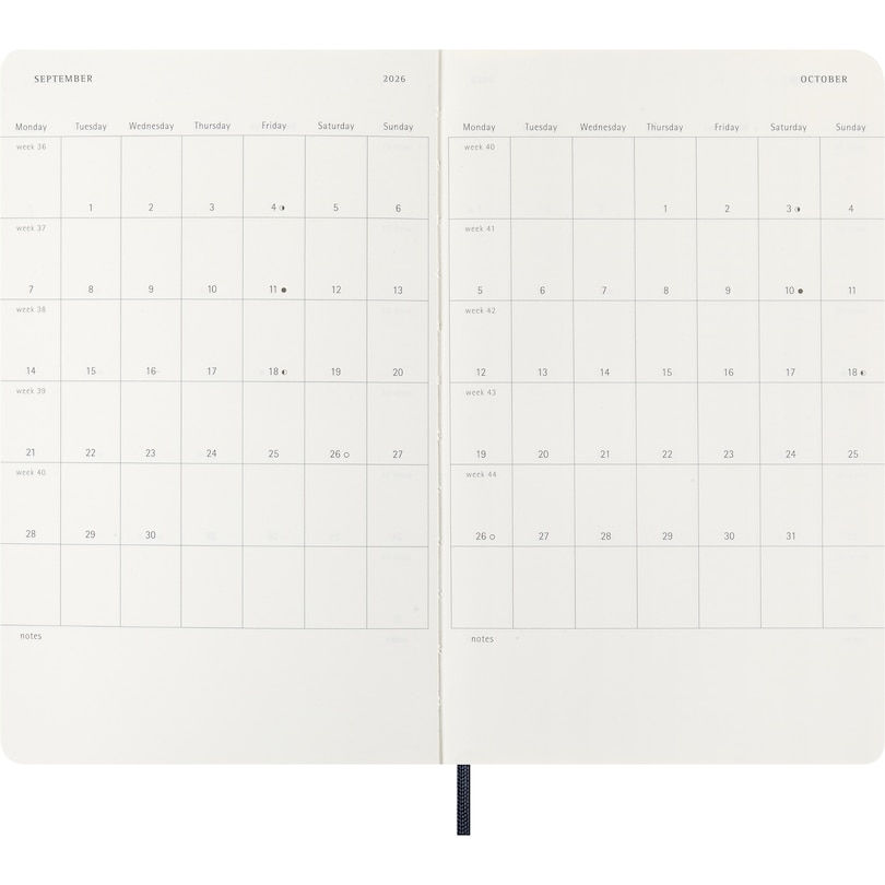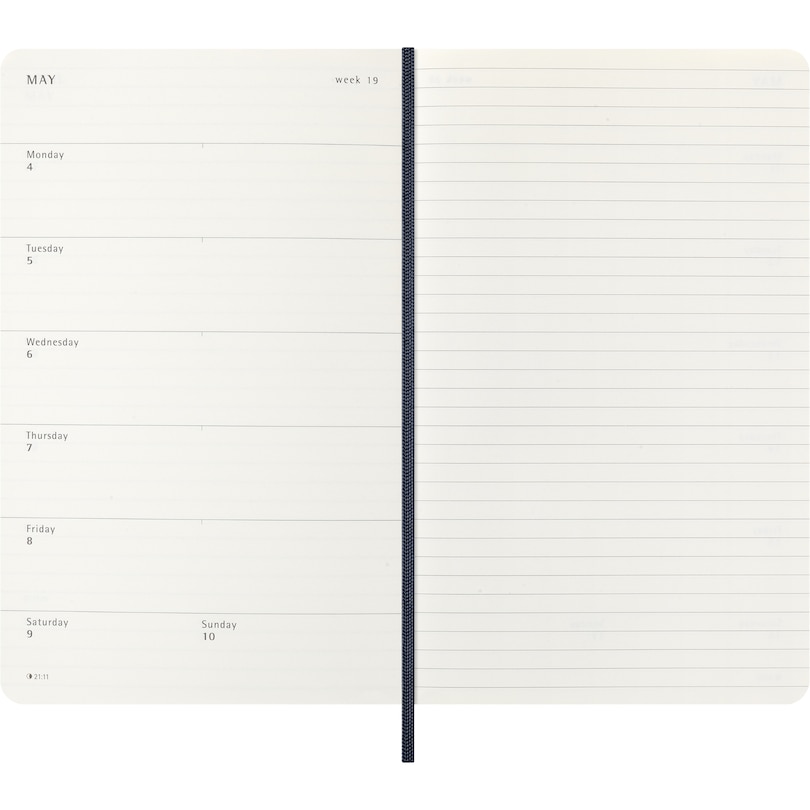 Aperçu gratuit du livre Moleskine agenda semainier Classic 12 mois 2026, couverture souple, grand format (12,7 x 21 cm), bleu saphir, 144 pages